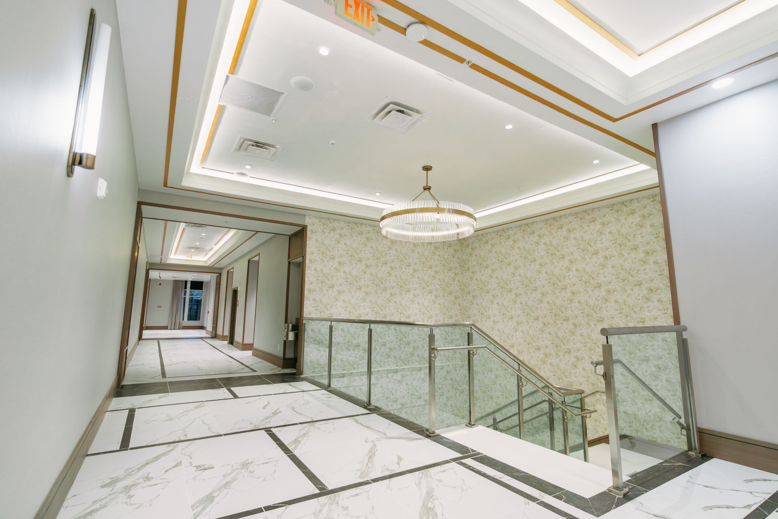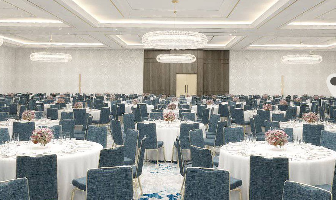 The Side Pre-Function Area offers a striking first impression, anchored by a sweeping grand staircase that adds a sense of drama and elegance to any event. Perfect for pre-reception mingling, cocktail hours, or photo opportunities, this versatile space blends functionality with style. Whether used as a welcoming lounge, a graceful transition into the ballroom, or a backdrop for memorable entrances, the Side Pre-Function Area elevates every moment with its timeless charm.